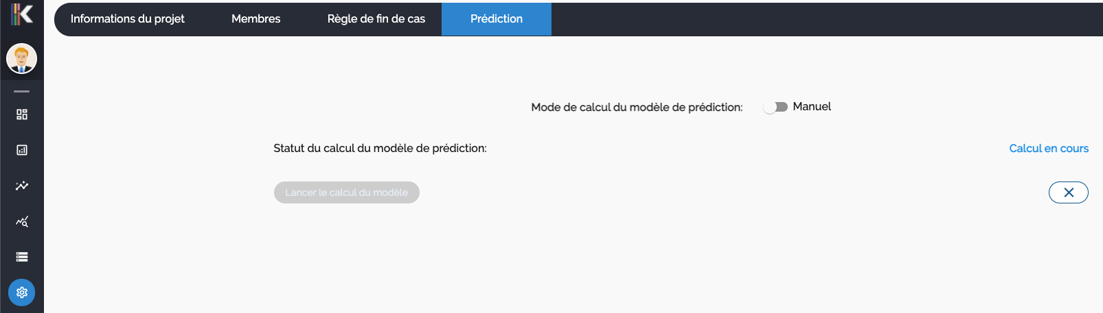 Le bouton "Lancer le calcul du modèle" déclenche l'entrainement de la prédiction sur ce projet.